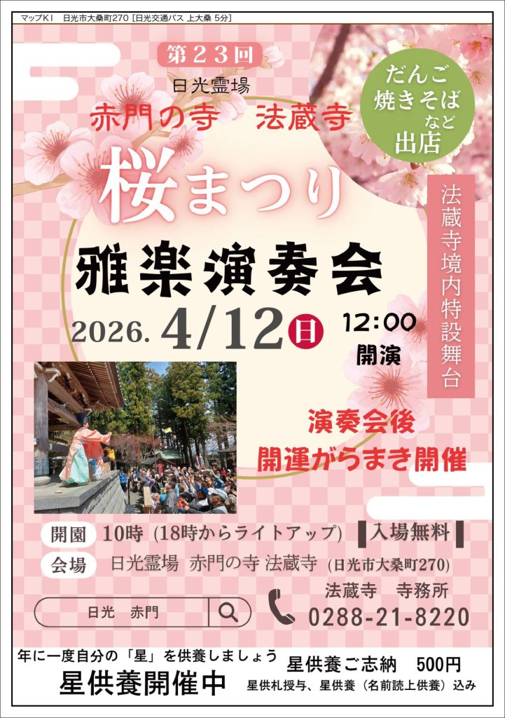 また今週の日曜日には『さくらまつり・雅楽演奏会』を開催します